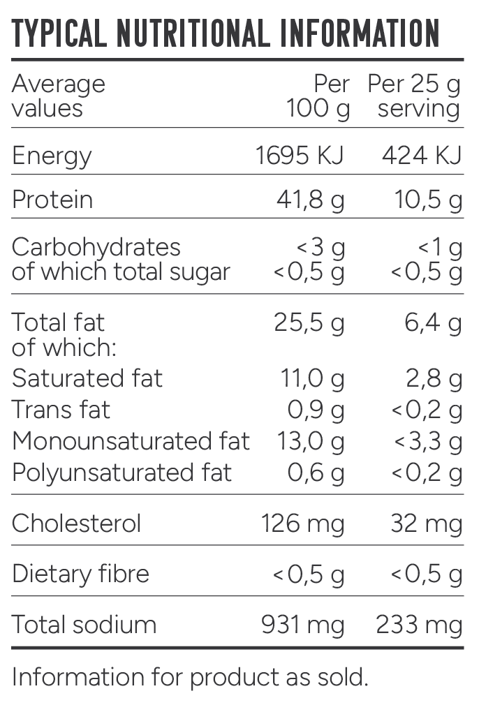 Our biltong is made using Halaal-certified meat. However, please note that it is produced in a facility that is not Halaal-certified.