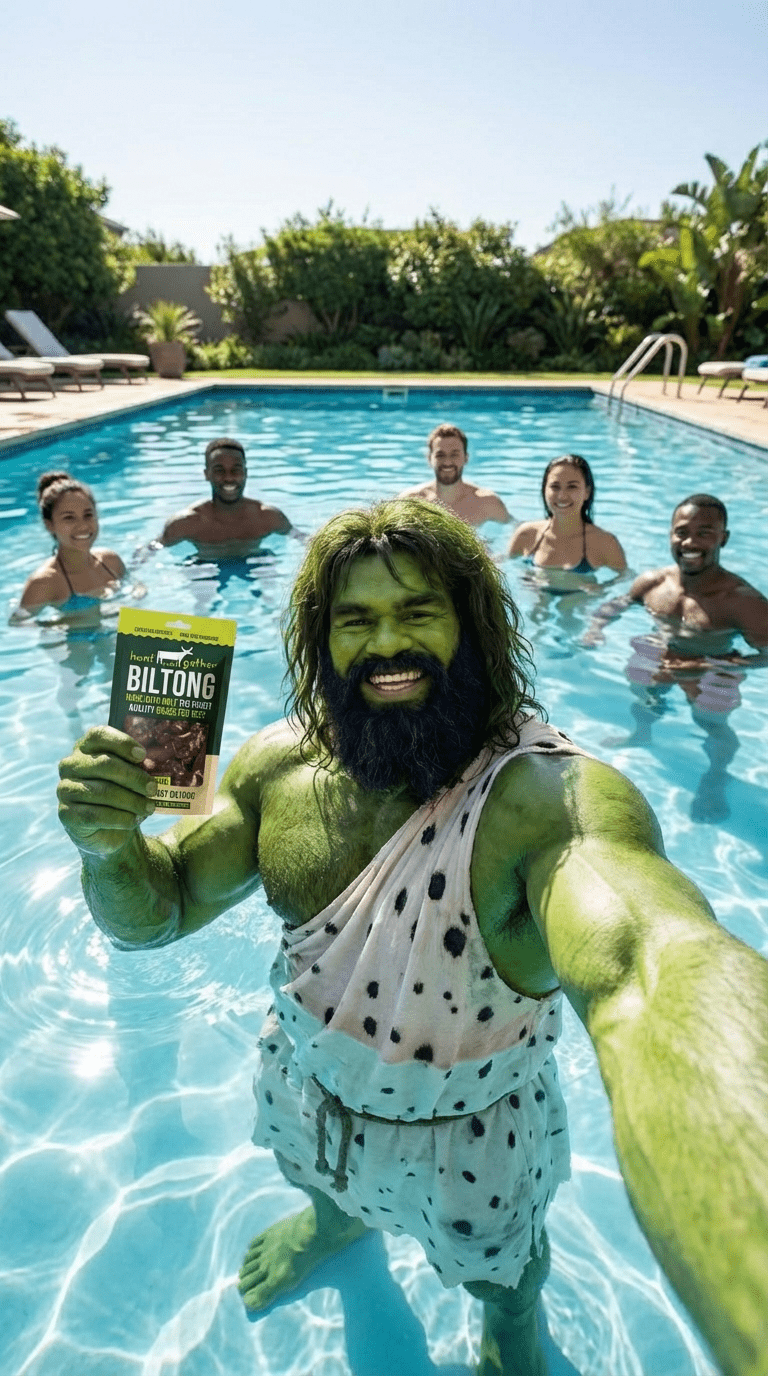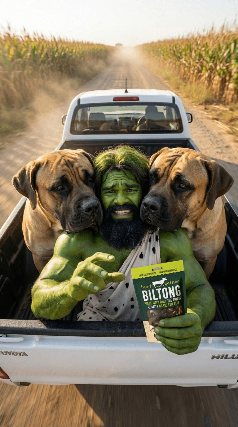 Utzi is our wild-hearted caveman mascot, the original hunter gatherer with a taste for real biltong. He says no to BS ingredients and yes to flavour. Think of him as the guardian of honest snacking.